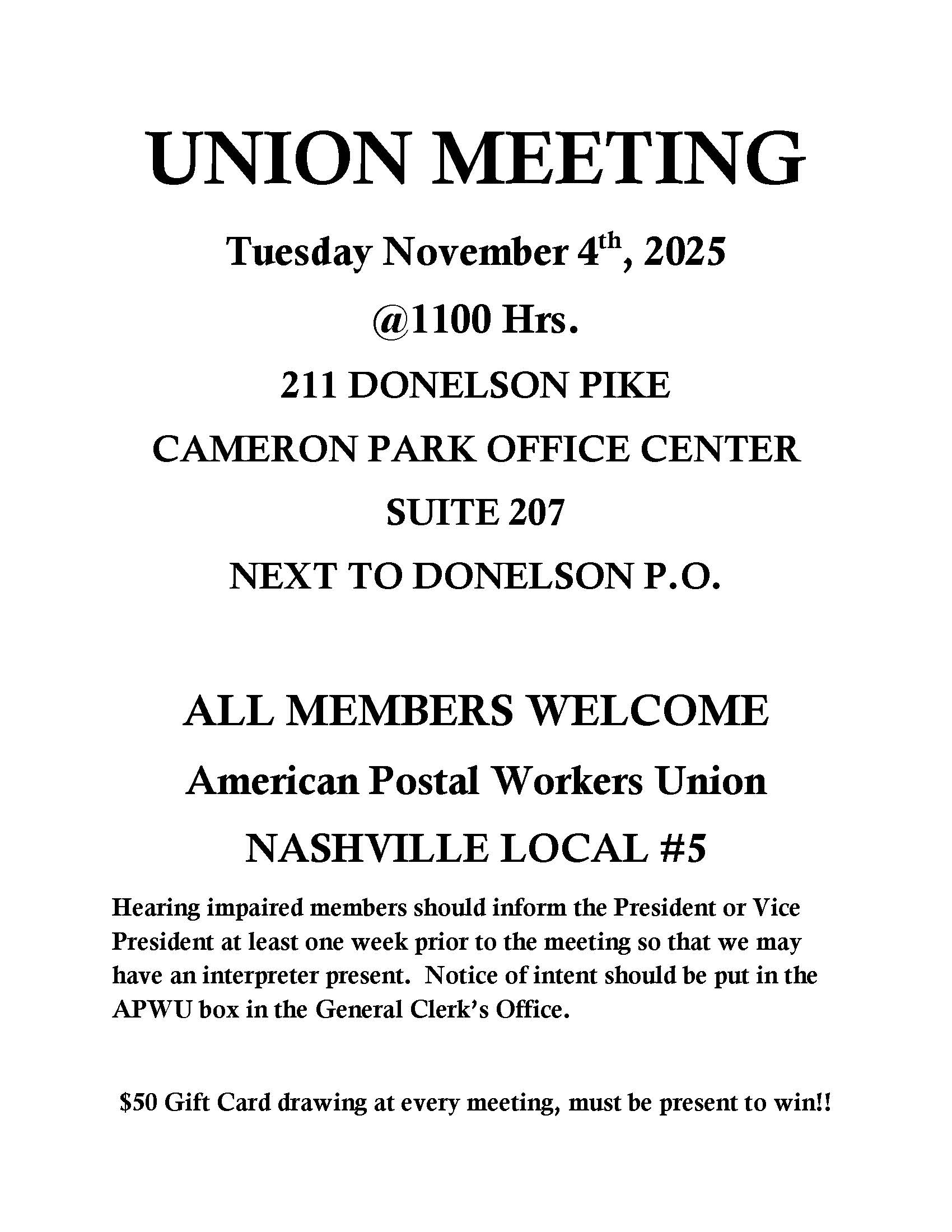 Nashville APWU P.O. Box 290033, Nashville, TN 37229 Phone: (615) 885-2833 Fax: (615) 885-0844 |